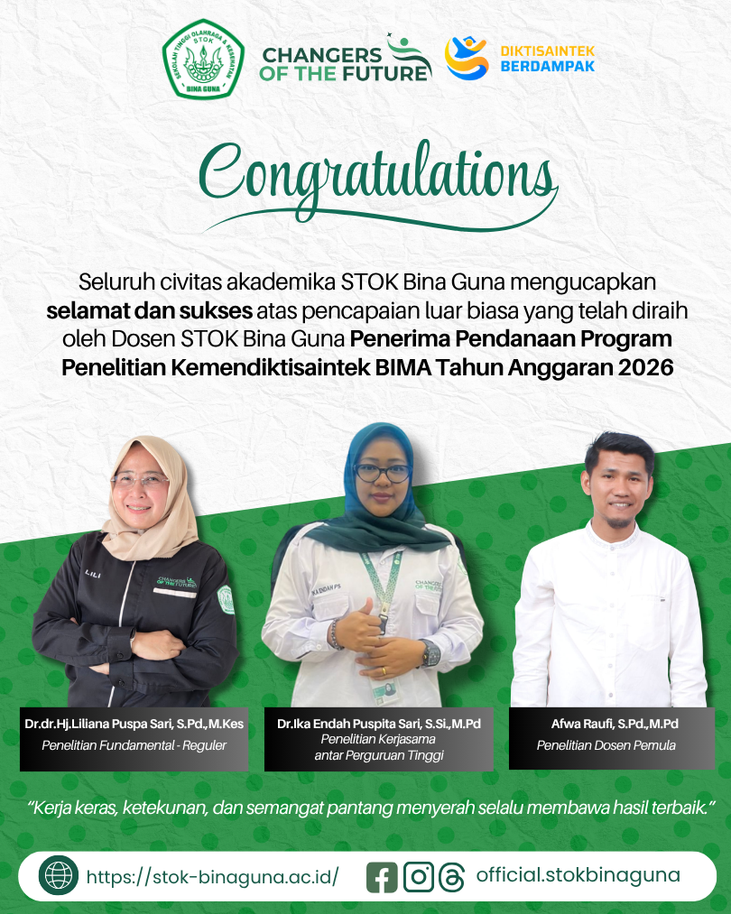 Seluruh civitas akademika STOK Bina Guna mengucapkan selamat dan sukses atas pencapaian luar biasa yang...