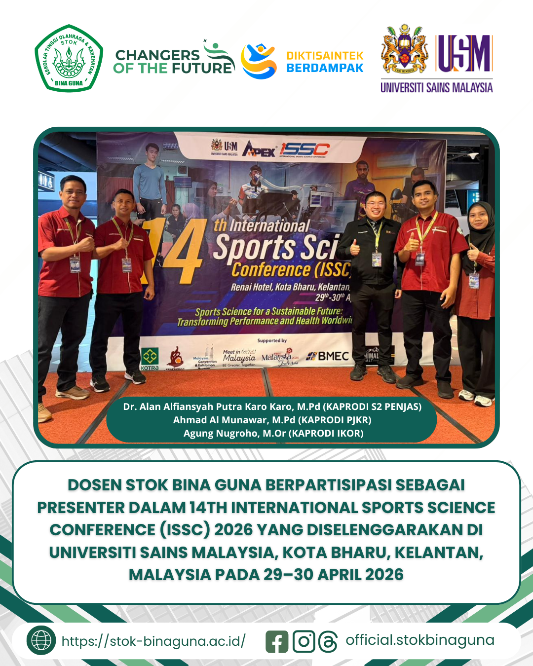 Keikutsertaan ini adalah bentuk komitmen terhadap kerjasama yang telah dijalin dengan Universiti Sains Malaysia, dan menjadi langkah nyata dalam memperluas jejaring akademik global serta meningkatkan kontribusi STOK Bina Guna dalam pengembangan ilmu keolahragaan di tingkat internasional.