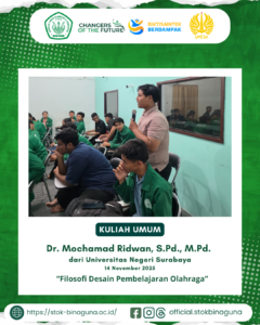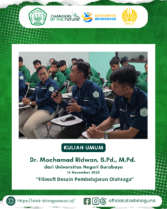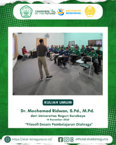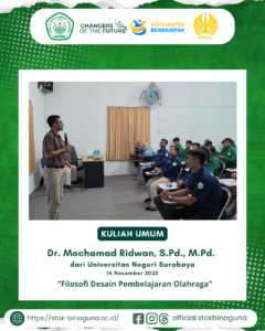 Kuliah Umum oleh Bapak Dr. Mochamad Ridwan, S.Pd., M.Pd. dari Universitas Negeri Surabaya, dengan tema : "“Filosofi Desain Pembelajaran Olahraga” pada tanggal 14 November 2025 lalu.