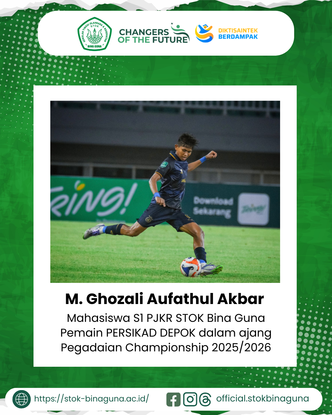 M. Ghozali Aufathul Akbar, Mahasiswa S1 PJKR STOK Bina Guna, Pemain PERSIKAD DEPOK dalam ajang Pegadaian Championship 2025/2026