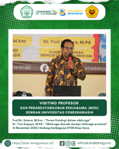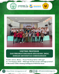 Pada tanggal 14 November 2025 lalu, telah dilaksanakan kegiatan Visiting Profesor dan Kuliah Umum serta Penandatanganan Kerjasama (MoU) dengan Universitas Cenderawasih di Gedung Serbaguna STOK Bina Guna.