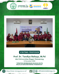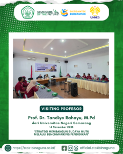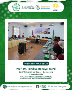 Visiting Profesor : Prof. Dr. Tandiyo Rahayu, M.Pd dari Universitas Negeri Semarang, dengan tema : “Strategi membangun budaya mutu melalui benchmarking pendidikan” pada tanggal 14 November 2025 lalu.